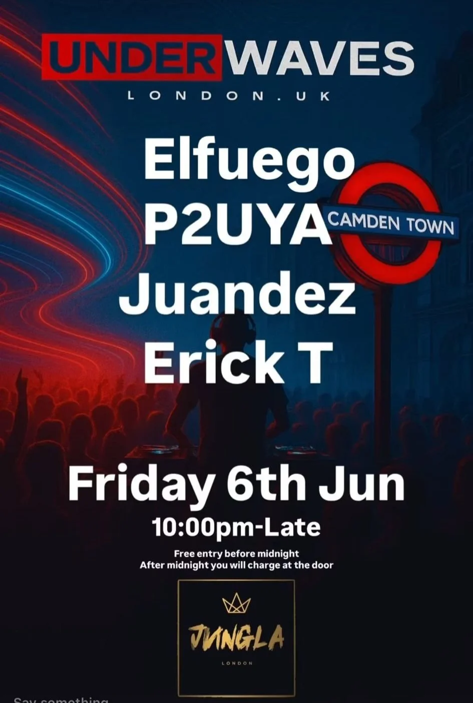 On June 6th, 2025, ELFUEGO took over Jungla Camden – London with a high-energy DJ set that fused House, Tech House, Deep, and Funky grooves, igniting the dance floor and connecting souls through sound.